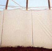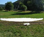 Windlastversuchen hat sich gezeigt, dass bei einem Tipi mit 6.3 Meter Durchmesser,