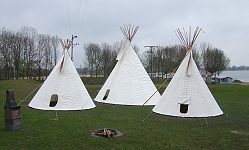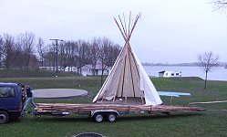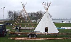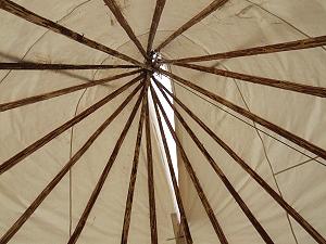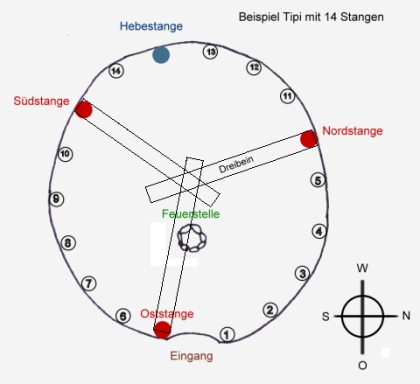 eines Tipi Zeltes mit 14 Stangen. Der Eingang des Tipis zeigt in der Regel Richtung