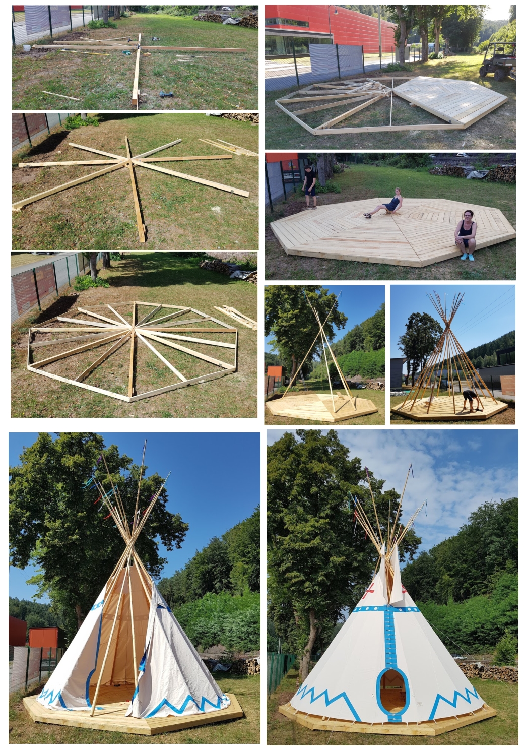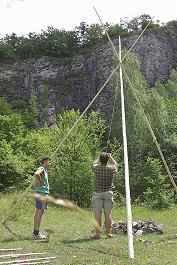 Grundaufbau des Tipis erfolgt über ein Dreibein. Wähle dafür die